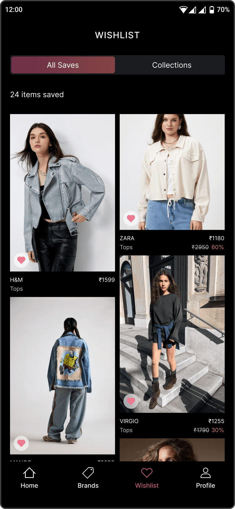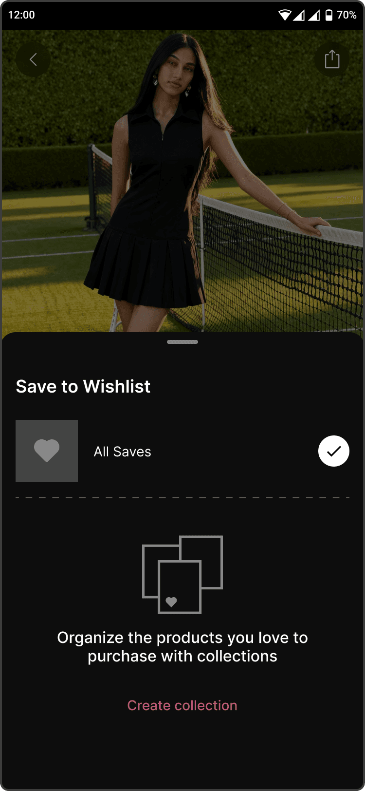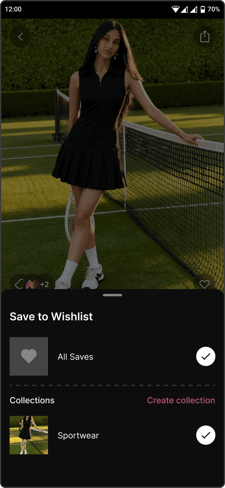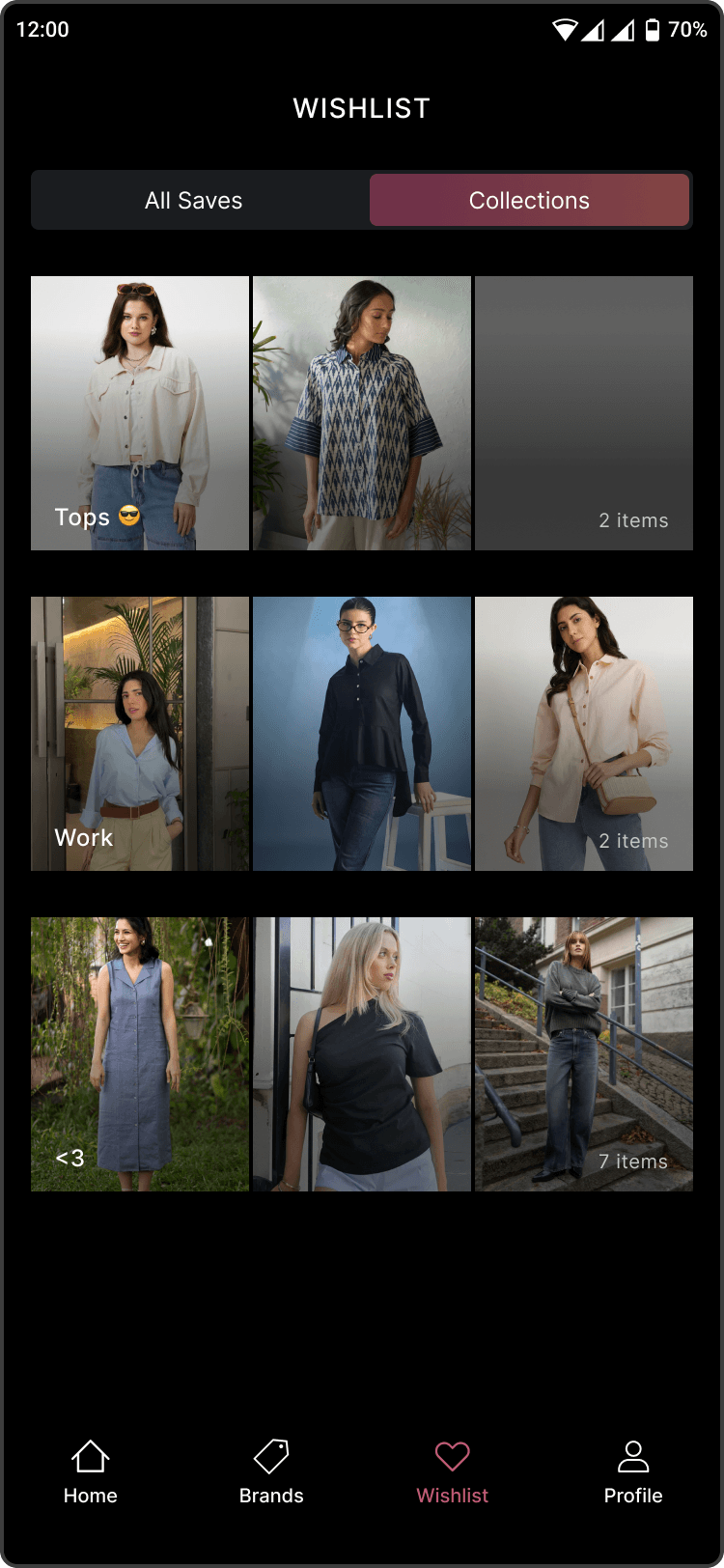 The wishlist and collections is designed to capture long-term fashion intent rather than just wishlisting. Users can organize saved items by occasions, moods, or themes, which also helps personalize discovery over time.