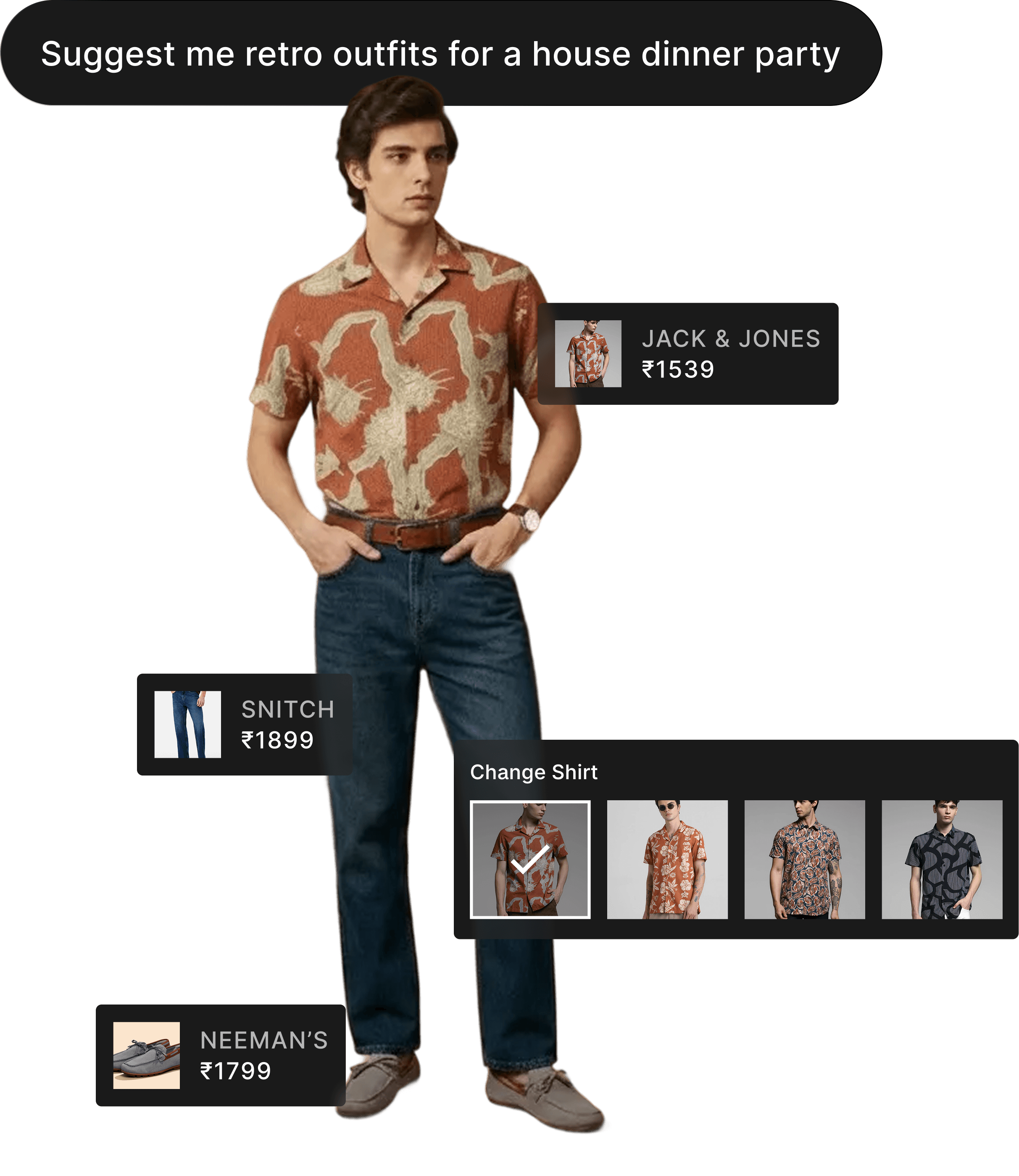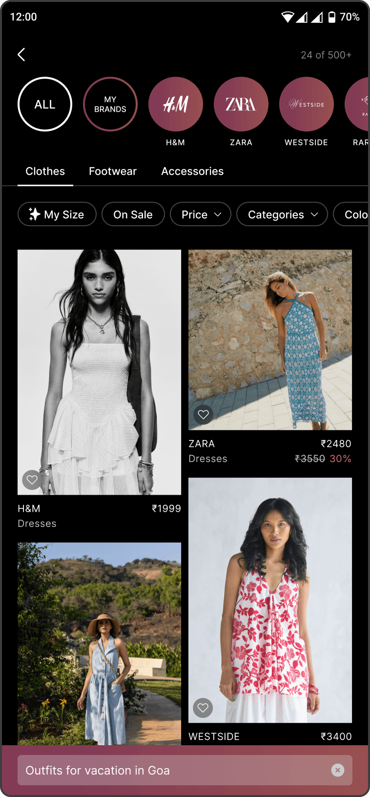 Unlocking another way of discovery by generating outfits with real products across brands and letting users to refine items in the outfit. This feature is being tested and will be updated once it's live.