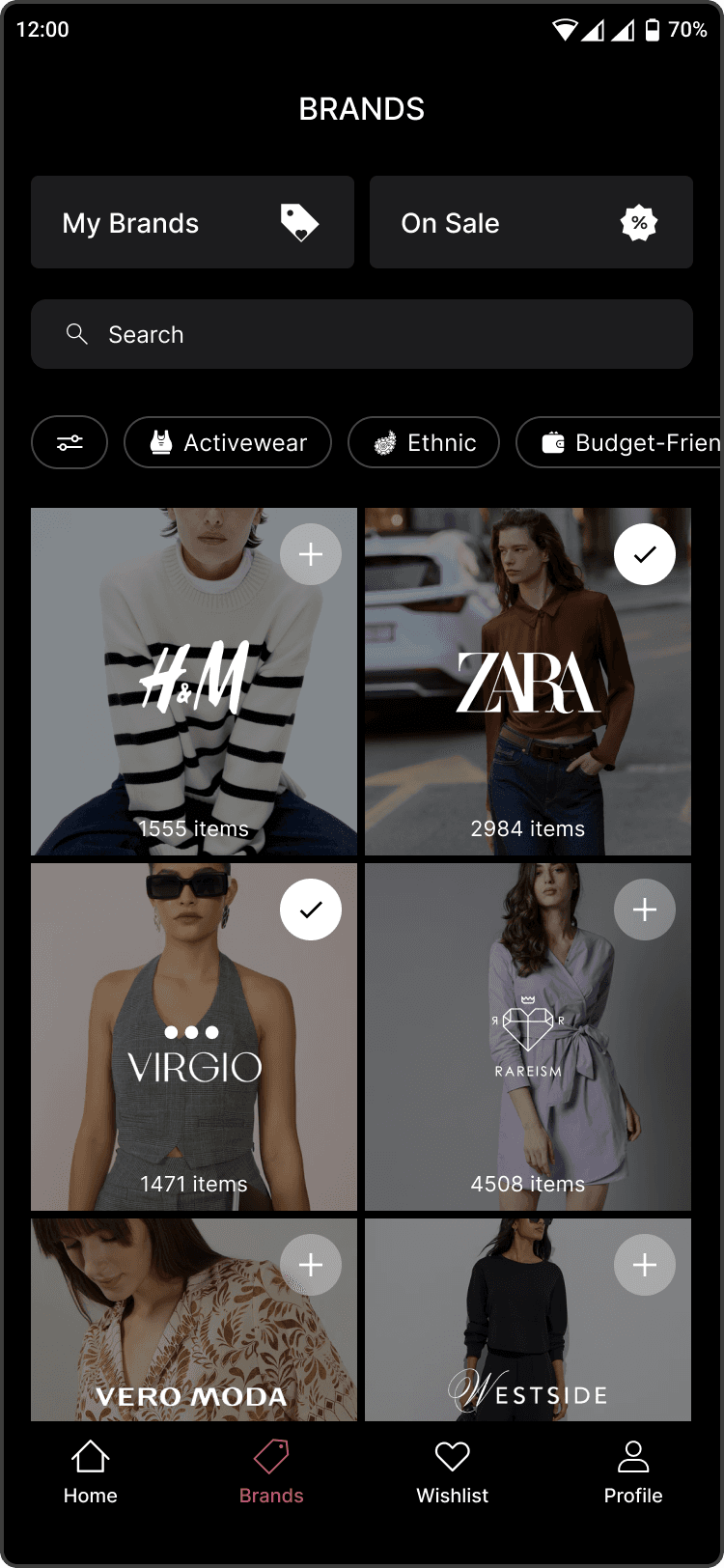 The Brands page is designed to make fashion discovery feel open rather than platform-driven. It brings together high-street and homegrown brands in one place, helping users explore alternatives without being limited to familiar names.